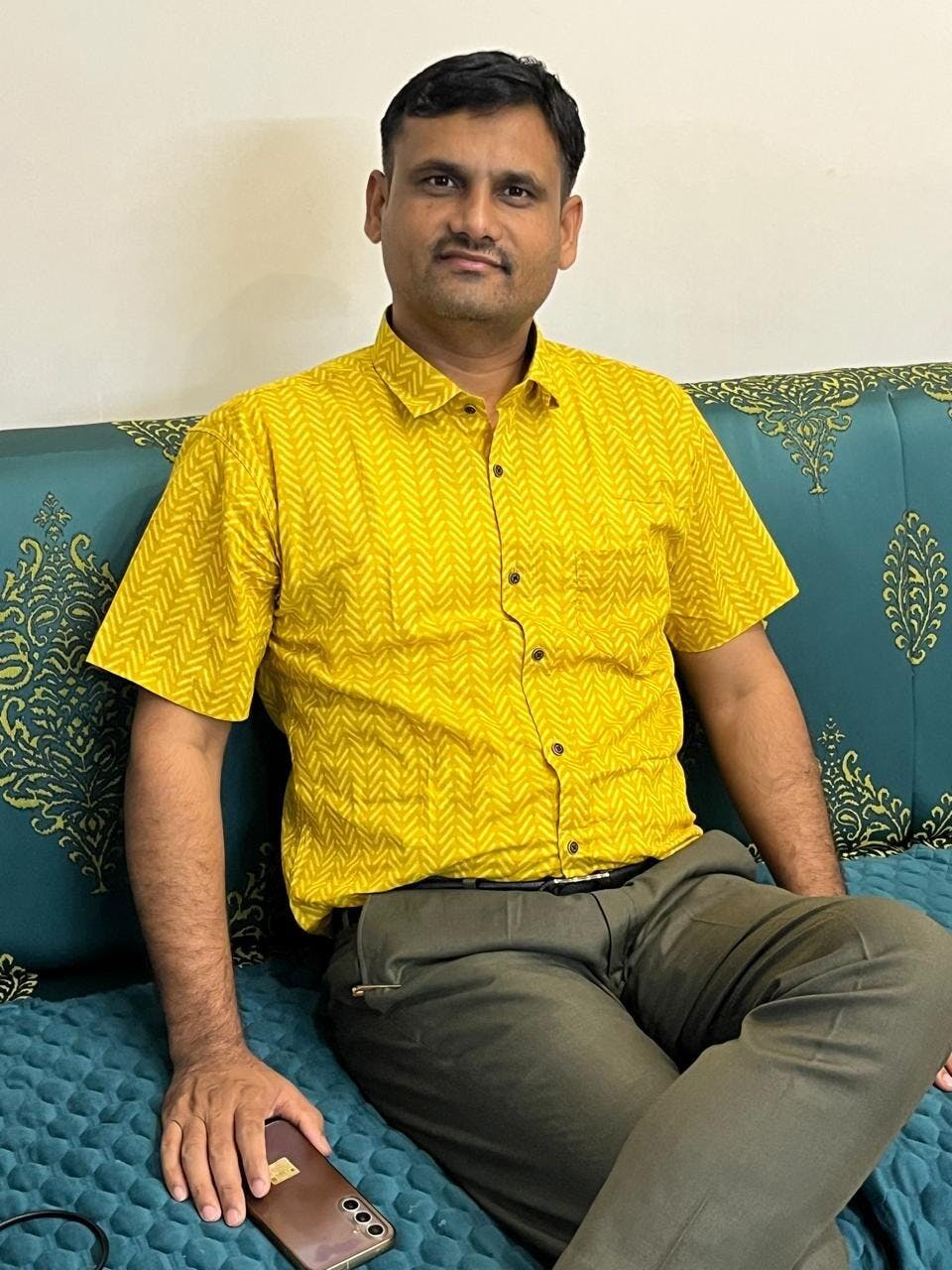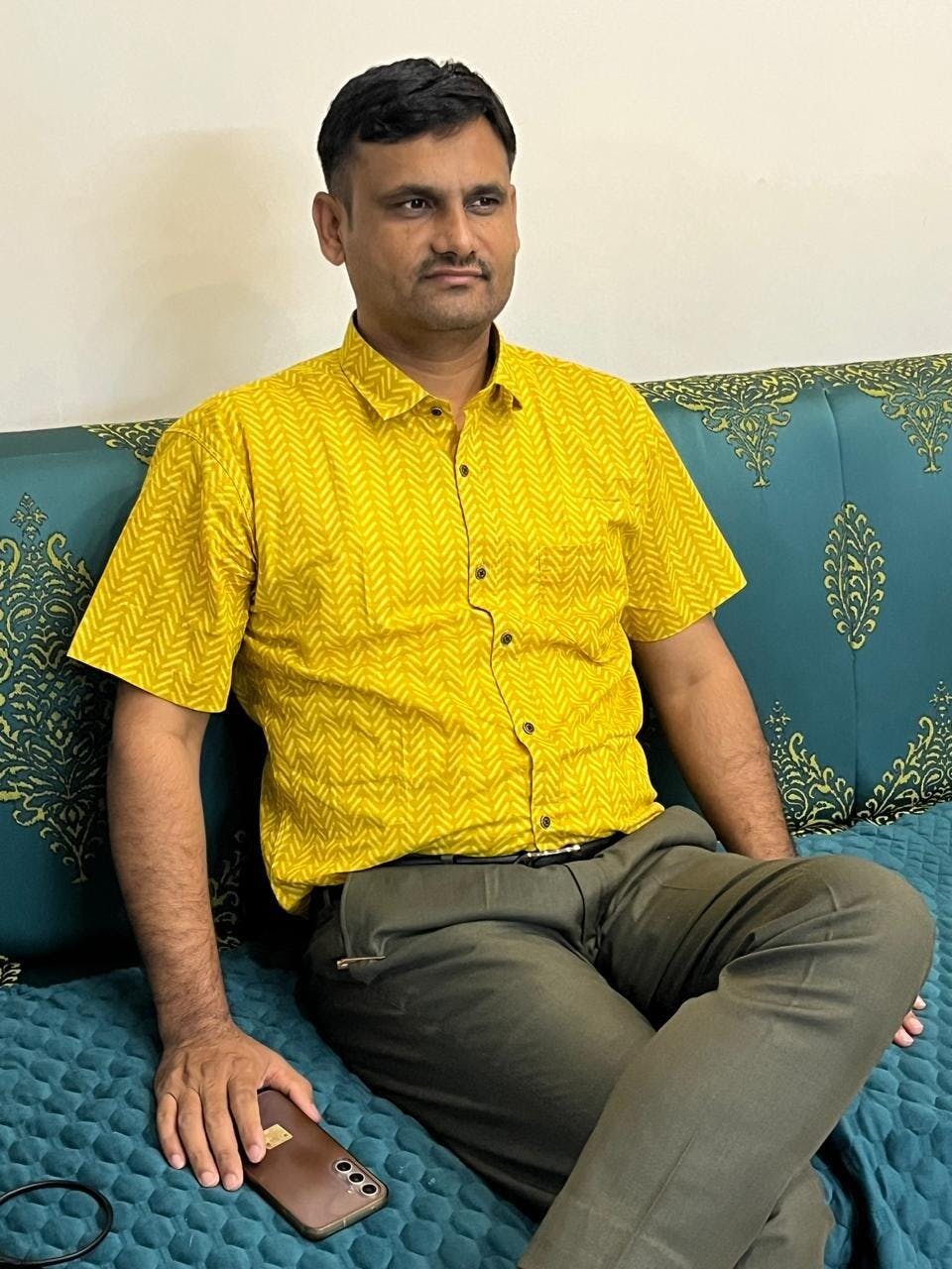Printed Mustard Cotton Regular Fit Casual Shirt(Half Sleeves)
